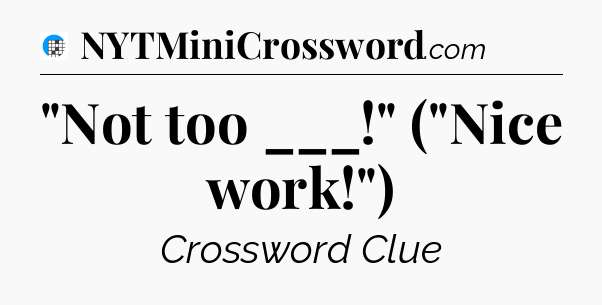 The clue “”Not too ___!” (“Nice work!”)” most recently appeared in a USA Today Crossword on August 12, 2025.