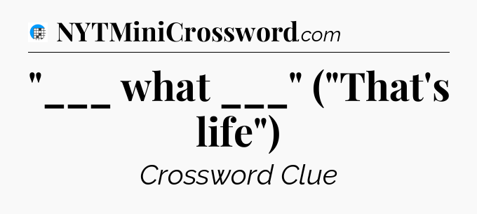 The clue “”___ what ___” (“That’s life”)” most recently appeared in a USA Today Crossword on August 16, 2025.