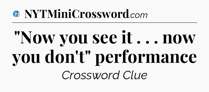 The clue “”Now you see it . . . now you don’t” performance” most recently appeared in a USA Today Crossword on August 16, 2025.