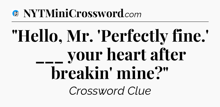 What is the answer to the clue “”Hello, Mr. ‘Perfectly fine.’ ___ your heart after breakin’ mine?””?