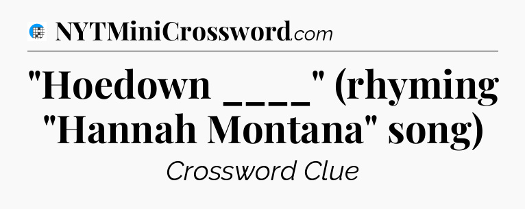 The clue “”Hoedown ____” (rhyming “Hannah Montana” song)” most recently appeared in a USA Today Crossword on August 17, 2024.