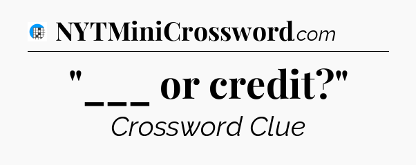 The clue “”___ or credit?”” most recently appeared in a USA Today Crossword on August 17, 2025.