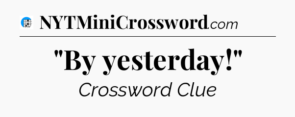 The clue “”By yesterday!”” most recently appeared in a USA Today Crossword on August 18, 2025.