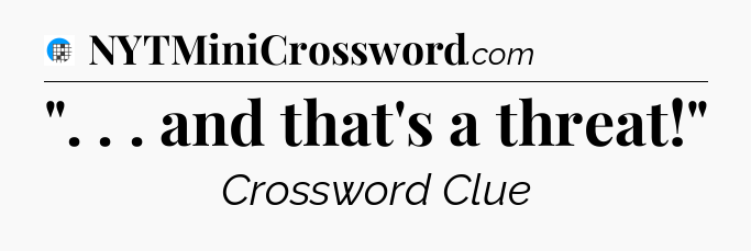 The clue “”. . . and that’s a threat!”” most recently appeared in a USA Today Crossword on August 19, 2024.