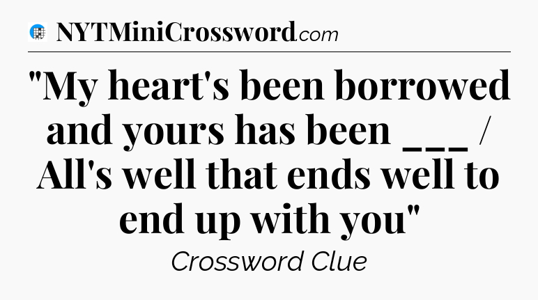 The clue “”My heart’s been borrowed and yours has been ___ / All’s well that ends well to end up with you”” most recently appeared in a USA Today Crossword on August 22, 2024.