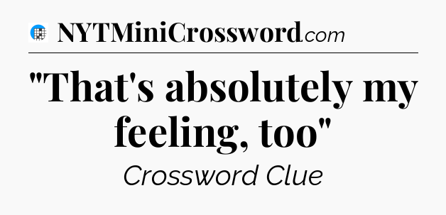 The clue “”That’s absolutely my feeling, too”” most recently appeared in a USA Today Crossword on August 23, 2025.