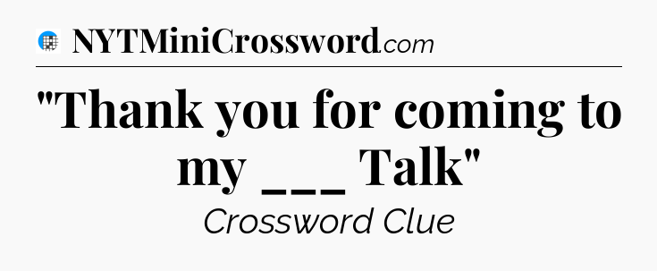There is 1 possible answer for the crossword clue “”Thank you for coming to my ___ Talk””.