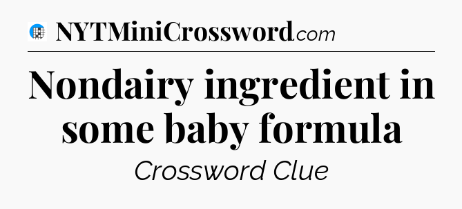 The clue “Nondairy ingredient in some baby formula” most recently appeared in a USA Today Crossword on August 26, 2025.
