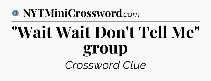 The clue “”Wait Wait Don’t Tell Me” group” most recently appeared in a USA Today Crossword on August 29, 2025.