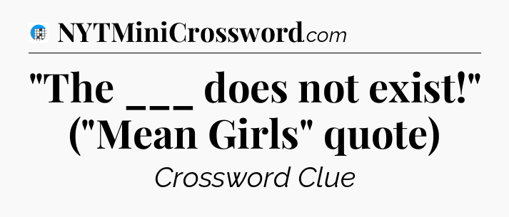 There is 1 possible answer for the crossword clue “”The ___ does not exist!” (“Mean Girls” quote)”.