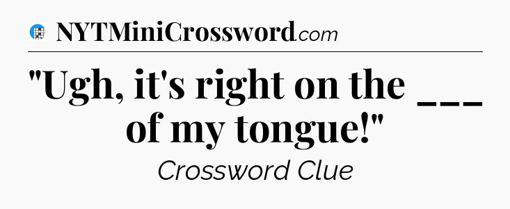 The correct answer to the crossword clue “”Ugh, it’s right on the ___ of my tongue!”” is TIP.