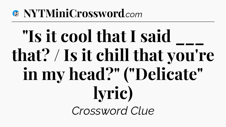 The clue “”Is it cool that I said ___ that? / Is it chill that you’re in my head?” (“Delicate” lyric)” most recently appeared in a USA Today Crossword on September 1, 2024.