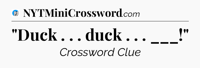 The clue “”Duck . . . duck . . . ___!”” most recently appeared in a USA Today Crossword on September 11, 2024.