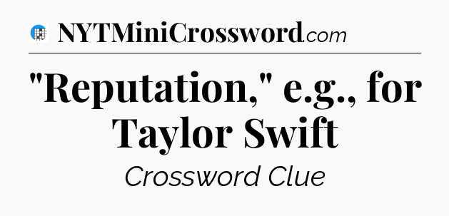 The clue “”Reputation,” e.g., for Taylor Swift” most recently appeared in a USA Today Crossword on September 11, 2024.