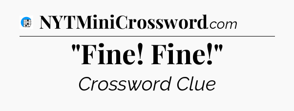 The clue “”Fine! Fine!”” most recently appeared in a USA Today Crossword on September 13, 2025.
