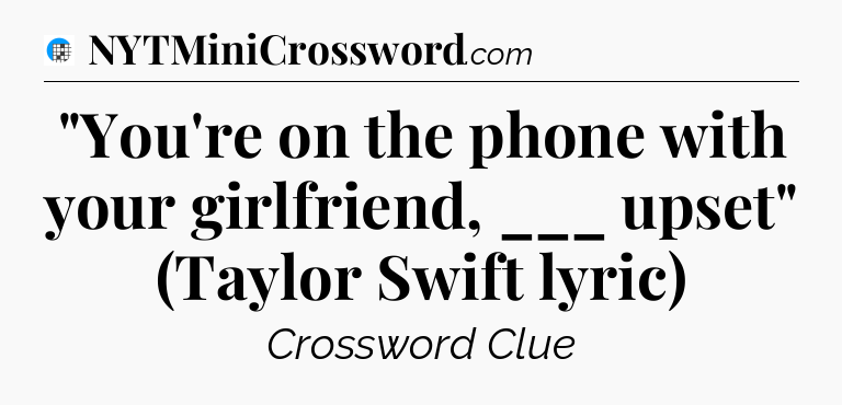 There is 1 possible answer for the crossword clue “”You’re on the phone with your girlfriend, ___ upset” (Taylor Swift lyric)”.