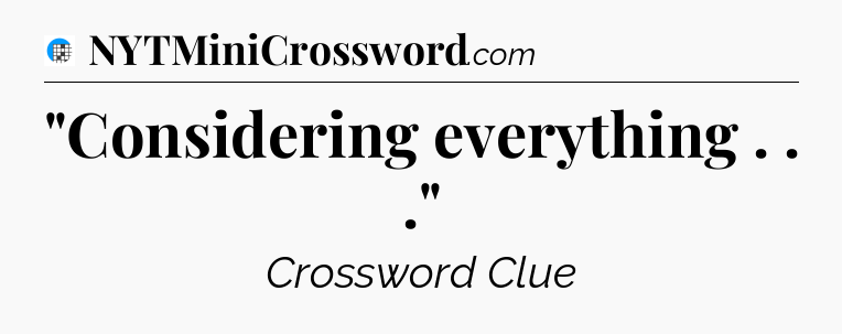The Answer for “Considering everything . . .” Crossword Clue is: