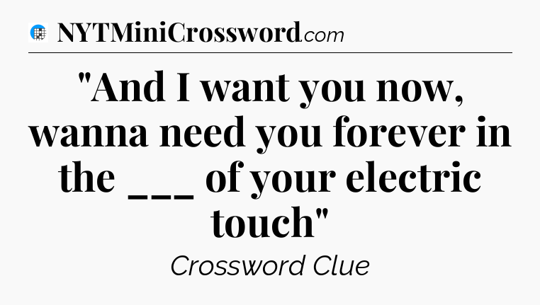 The clue “”And I want you now, wanna need you forever in the ___ of your electric touch”” most recently appeared in a USA Today Crossword on September 17, 2024.