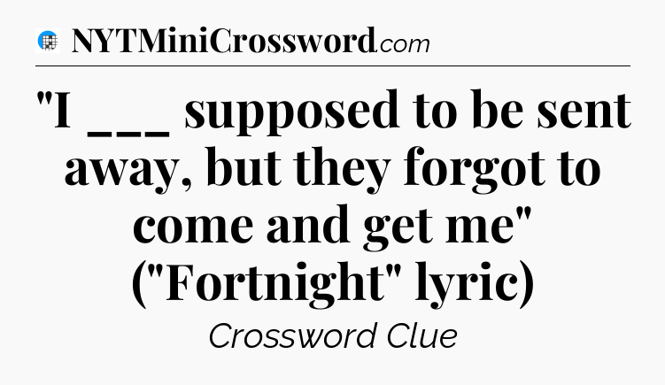 “”I ___ supposed to be sent away, but they forgot to come and get me” (“Fortnight” lyric)” USA Today Crossword Clue: Frequently Asked Questions