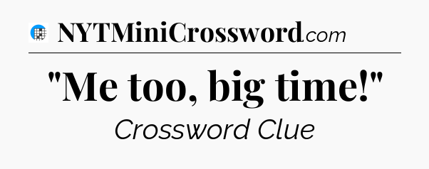 The clue “”Me too, big time!”” most recently appeared in a USA Today Crossword on September 19, 2024.