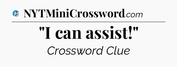 The clue “”I can assist!”” most recently appeared in a USA Today Crossword on September 22, 2024.