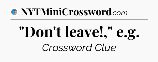 The Answer for “Don’t leave!,” e.g Crossword Clue is: