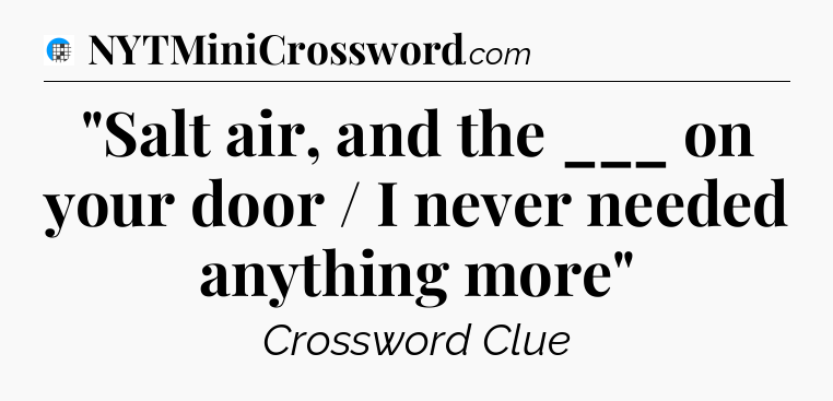 The clue “”Salt air, and the ___ on your door / I never needed anything more”” most recently appeared in a USA Today Crossword on September 23, 2025.