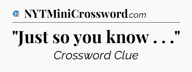 The clue “”Just so you know . . .”” most recently appeared in a USA Today Crossword on September 24, 2025.