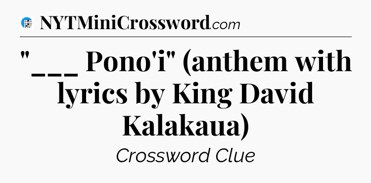 The clue “”___ Pono’i” (anthem with lyrics by King David Kalakaua)” most recently appeared in a USA Today Crossword on September 25, 2024.