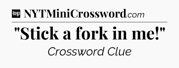 You’ll be glad to know, that your search for tips for Washington Post Crossword game is ending right on this page. With this website, you will not need any other help to pass difficult task or level. It helps you with “Stick a fork in me!” crossword clue answers, some additional solutions and useful tips and tricks. Using our website you will be able to quickly solve and complete Washington Post Crossword game which was created by the The Washington Post developer together with other games.