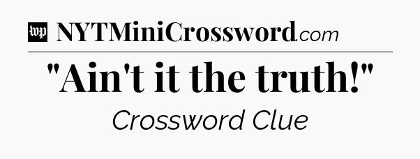 You’ll be glad to know, that your search for tips for Washington Post Crossword game is ending right on this page. With this website, you will not need any other help to pass difficult task or level. It helps you with “Ain’t it the truth!” crossword clue answers, some additional solutions and useful tips and tricks. Using our website you will be able to quickly solve and complete Washington Post Crossword game which was created by the The Washington Post developer together with other games.