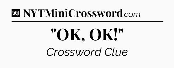 You’ll be glad to know, that your search for tips for Washington Post Crossword game is ending right on this page. With this website, you will not need any other help to pass difficult task or level. It helps you with “OK, OK!” crossword clue answers, some additional solutions and useful tips and tricks. Using our website you will be able to quickly solve and complete Washington Post Crossword game which was created by the The Washington Post developer together with other games.