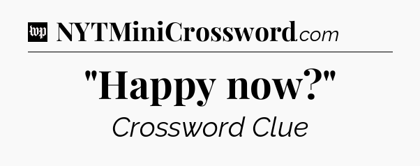 You’ll be glad to know, that your search for tips for Washington Post Crossword game is ending right on this page. With this website, you will not need any other help to pass difficult task or level. It helps you with “Happy now?” crossword clue answers, some additional solutions and useful tips and tricks. Using our website you will be able to quickly solve and complete Washington Post Crossword game which was created by the The Washington Post developer together with other games.