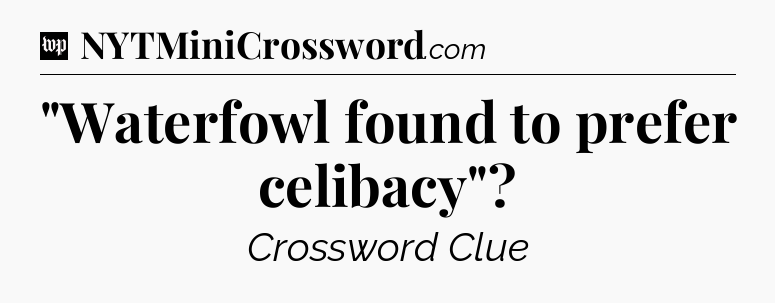 You’ll be glad to know, that your search for tips for Washington Post Crossword game is ending right on this page. With this website, you will not need any other help to pass difficult task or level. It helps you with “Waterfowl found to prefer celibacy” crossword clue answers, some additional solutions and useful tips and tricks. Using our website you will be able to quickly solve and complete Washington Post Crossword game which was created by the The Washington Post developer together with other games.