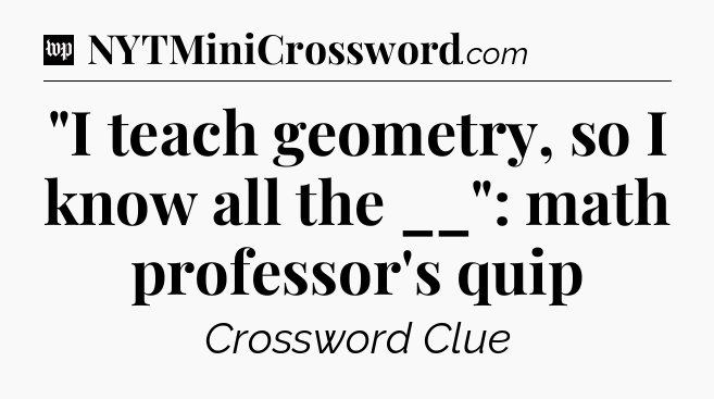 The Answer for “I teach geometry, so I know all the __”: math professor’s quip Crossword Clue is: