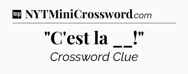 You’ll be glad to know, that your search for tips for Washington Post Crossword game is ending right on this page. With this website, you will not need any other help to pass difficult task or level. It helps you with “C’est la __!” crossword clue answers, some additional solutions and useful tips and tricks. Using our website you will be able to quickly solve and complete Washington Post Crossword game which was created by the The Washington Post developer together with other games.