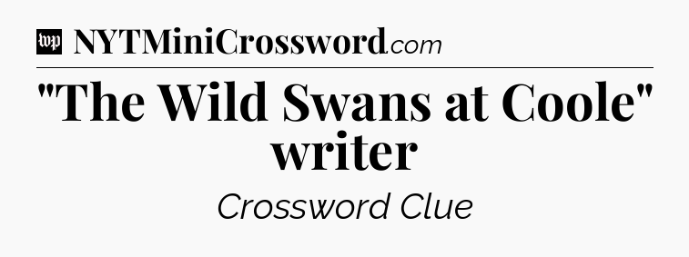 You’ll be glad to know, that your search for tips for Washington Post Crossword game is ending right on this page. With this website, you will not need any other help to pass difficult task or level. It helps you with “The Wild Swans at Coole” writer crossword clue answers, some additional solutions and useful tips and tricks. Using our website you will be able to quickly solve and complete Washington Post Crossword game which was created by the The Washington Post developer together with other games.