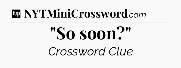 You’ll be glad to know, that your search for tips for Washington Post Crossword game is ending right on this page. With this website, you will not need any other help to pass difficult task or level. It helps you with “So soon?” crossword clue answers, some additional solutions and useful tips and tricks. Using our website you will be able to quickly solve and complete Washington Post Crossword game which was created by the The Washington Post developer together with other games.
