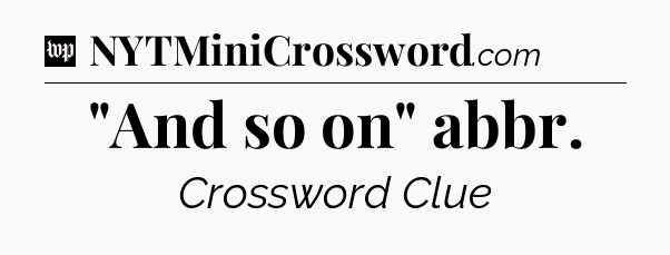 You’ll be glad to know, that your search for tips for Washington Post Crossword game is ending right on this page. With this website, you will not need any other help to pass difficult task or level. It helps you with “And so on” abbr crossword clue answers, some additional solutions and useful tips and tricks. Using our website you will be able to quickly solve and complete Washington Post Crossword game which was created by the The Washington Post developer together with other games.