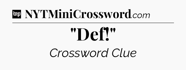 You’ll be glad to know, that your search for tips for Washington Post Crossword game is ending right on this page. With this website, you will not need any other help to pass difficult task or level. It helps you with “Def!” crossword clue answers, some additional solutions and useful tips and tricks. Using our website you will be able to quickly solve and complete Washington Post Crossword game which was created by the The Washington Post developer together with other games.
