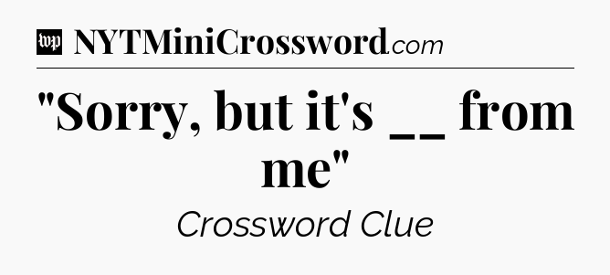 You’ll be glad to know, that your search for tips for Washington Post Crossword game is ending right on this page. With this website, you will not need any other help to pass difficult task or level. It helps you with “Sorry, but it’s __ from me” crossword clue answers, some additional solutions and useful tips and tricks. Using our website you will be able to quickly solve and complete Washington Post Crossword game which was created by the The Washington Post developer together with other games.