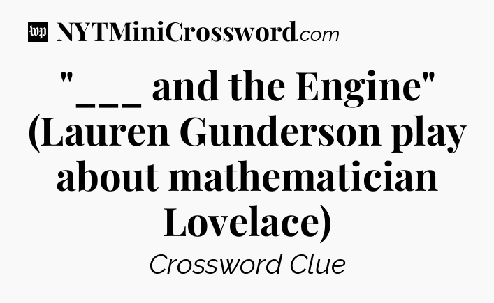You’ve come to our website, which offers answers for the Washington Post Sunday Crossword game. With this website, you will not need any other help to pass difficult task or level. It helps you with “___ and the Engine” (Lauren Gunderson play about mathematician Lovelace) crossword clue answers, some additional solutions and useful tips and tricks. The team that named The Washington Post, which has developed a lot of great other games and add this game to the Google Play and Apple stores.