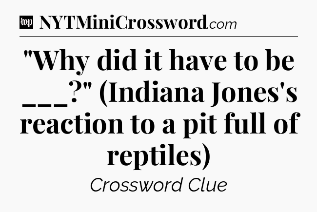 You’ve come to our website, which offers answers for the Washington Post Sunday Crossword game. With this website, you will not need any other help to pass difficult task or level. It helps you with “Why did it have to be ___?” (Indiana Jones’s reaction to a pit full of reptiles) crossword clue answers, some additional solutions and useful tips and tricks. The team that named The Washington Post, which has developed a lot of great other games and add this game to the Google Play and Apple stores.