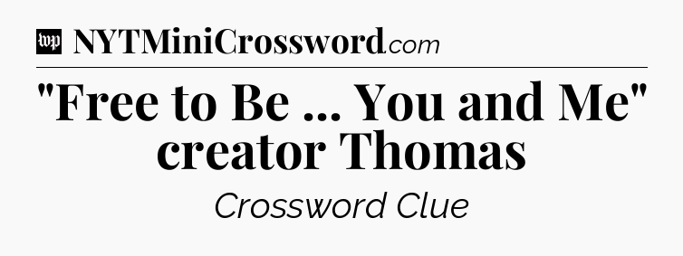 You’ve come to our website, which offers answers for the Washington Post Sunday Crossword game. With this website, you will not need any other help to pass difficult task or level. It helps you with “Free to Be … You and Me” creator Thomas crossword clue answers, some additional solutions and useful tips and tricks. The team that named The Washington Post, which has developed a lot of great other games and add this game to the Google Play and Apple stores.