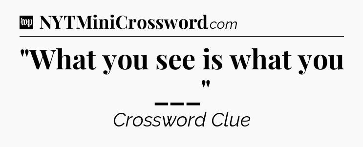 You’ve come to our website, which offers answers for the Washington Post Sunday Crossword game. With this website, you will not need any other help to pass difficult task or level. It helps you with “What you see is what you ___” crossword clue answers, some additional solutions and useful tips and tricks. The team that named The Washington Post, which has developed a lot of great other games and add this game to the Google Play and Apple stores.