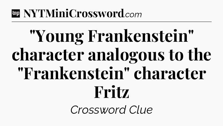 You’ve come to our website, which offers answers for the Washington Post Sunday Crossword game. With this website, you will not need any other help to pass difficult task or level. It helps you with “Young Frankenstein” character analogous to the “Frankenstein” character Fritz crossword clue answers, some additional solutions and useful tips and tricks. The team that named The Washington Post, which has developed a lot of great other games and add this game to the Google Play and Apple stores.