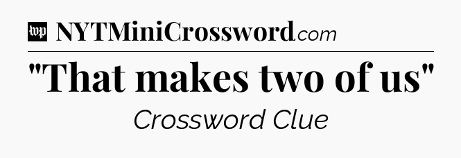 You’ve come to our website, which offers answers for the Washington Post Sunday Crossword game. With this website, you will not need any other help to pass difficult task or level. It helps you with “That makes two of us” crossword clue answers, some additional solutions and useful tips and tricks. The team that named The Washington Post, which has developed a lot of great other games and add this game to the Google Play and Apple stores.