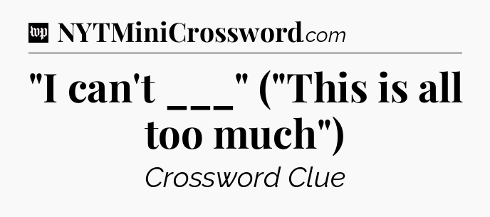 The Answer for “I can’t ___” (“This is all too much”) Crossword Clue is: