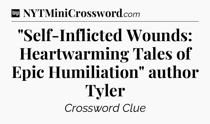 You’ve come to our website, which offers answers for the Washington Post Sunday Crossword game. With this website, you will not need any other help to pass difficult task or level. It helps you with “Self-Inflicted Wounds: Heartwarming Tales of Epic Humiliation” author Tyler crossword clue answers, some additional solutions and useful tips and tricks. The team that named The Washington Post, which has developed a lot of great other games and add this game to the Google Play and Apple stores.