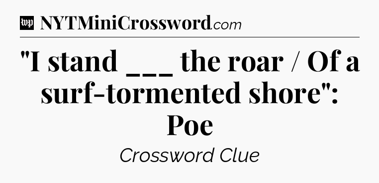 The Answer for “I stand ___ the roar / Of a surf-tormented shore”: Poe Crossword Clue is: